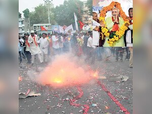 He then rushed inside the party office, where RC Faldu, state BJP chief, Pradipsinh Jadeja, minister of state for law and parliamentary affairs and other party functionaries, joined him. The tension in the room was evident and tangible, almost overpowering; one could cut the air with a knife when multiple pairs of eyes remained glued to the TV screens — scanning every word uttered or displayed. There was pin drop silence — no comments or reactions forthcoming. “Let the official announcement come. We will talk after that,” was all the bytes media got.