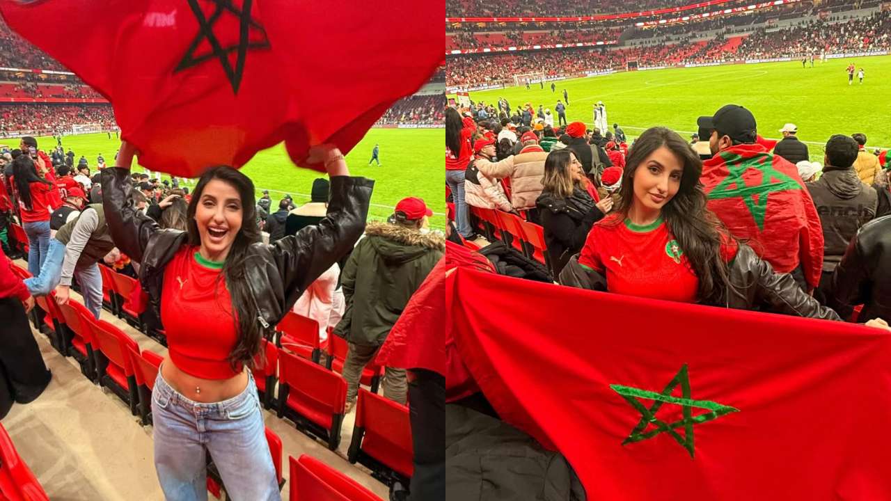 Nora Fatehi, who is herself from Moroccan descent, was seen cheering for the Morocco national football team, captained by Achraf Hakimi, in their quarterfinal match against Cameroon in the ongoing 2025 Africa Cup of Nations. Sharing the pictures on her Instagram after Morroco's victory last weekend, she wrote, "Dima Meghreb! What an INSANE GAME! Semi finals here we come."