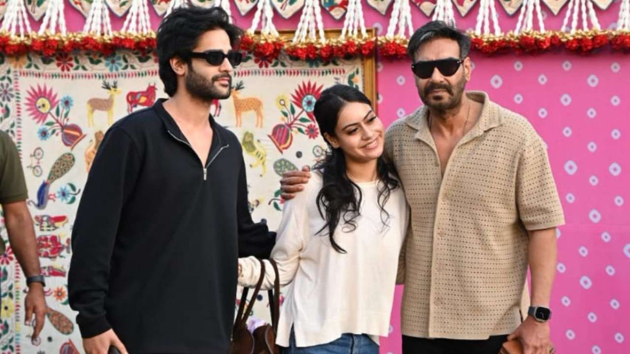 Here's Ajay Devgn, with his daughter Nysa Devgan, and nephew Aaman Devgan at the pre-wedding bash.