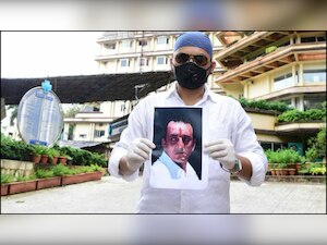 Wearing a white glove with black mask and blue bandana, the fan showed the picture to the paparazzi. According to Sanjay Dutt's tweet, he might get discharged either today or on Monday.
