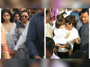 Unlike many stars, the occasion is a quite family affair for SRK. And today on the seventh day, Shah Rukh Khan and his family bid adieu to Lord Ganesha. As expected, the crowd went berserk when Shah Rukh Khan alongwith wife Gauri Khan, and two kids Suhana and Abram stepped out of Mannat for the visarjan procession. No wonder, social media is flooded with pictures of the khandaan– submerging the idol in the sea. We wonder why SRK's eldest son Aryan is missing from the procession. But being a doting father, SRK was spotted taking extra care of his little one. He is seen protecting Abram from the crowd and teaching him rituals during the visarjan.
