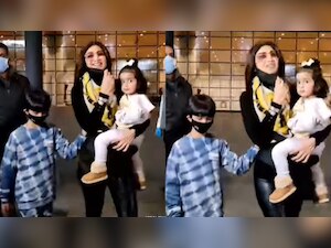 Shilpa may be seen holding her baby Samisha in her arms at the airport in a recent video. Viaan, her son, is also spotted walking with her.
