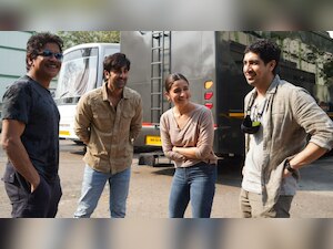 In the photos shared by Nagarjuna, the star is seen posing candidly with Ayan, Ranbir and Alia. While in another photo, they are posing while all smiles for the camera.