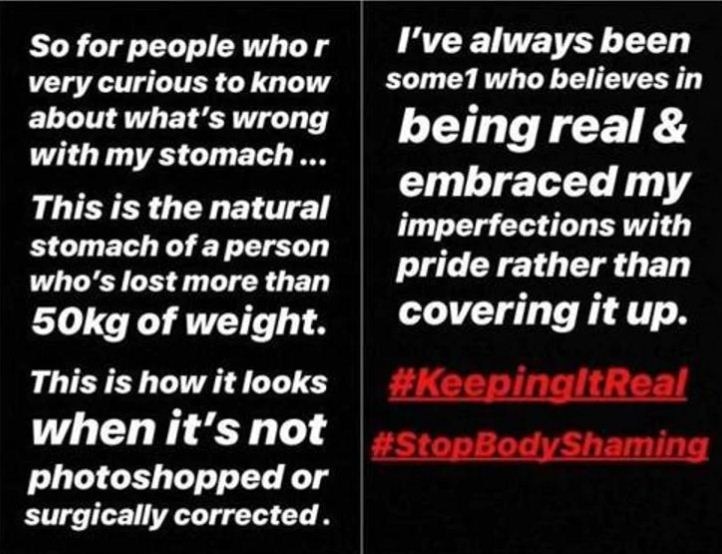Zareen shared these comments on her Instagram story, and went on to state that while losing weight, it is only natural to get stretch marks. She went on to spread the message of stopping body shaming people, and start accepting images without photoshop too.