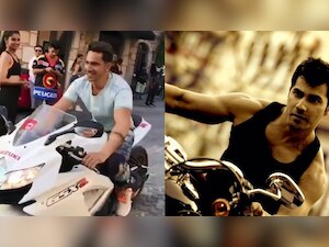 Varun Dhawan was seen having fun on the sets of his upcoming movie 'Street Dancer 3D' as he zoomed off on bike