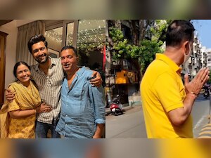 Vicky Kaushal's father was recently seen exiting a bank, where paparazzi began recording him. Vicky's father greeted them with a hand on his chest and then folded hands, demonstrating his kindness.