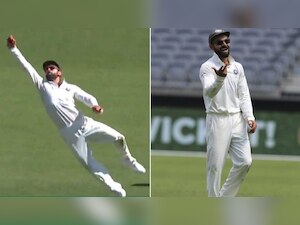 After tea, captain Virat Kohli pulled off a stunning catch to send back Peter Handscomb. The Indian captain took a one-handed blinder to get rid of Handscomb for seven runs. Ishant Sharma had bowled this back of a length outside off and Handscomb tried to go for a cut but gets a thick edge. It flew high to Kohli's right and he reached up with the right hand to pluck it.