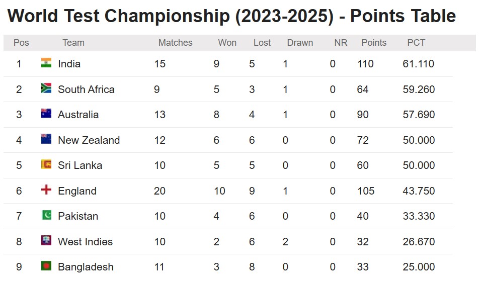 Despite the impressive victory, England's position on the World Test Championship points table remains unchanged at six. However, they remain in contention for a spot in the final. Conversely, New Zealand's defeat on home soil has dealt a blow to their chances of advancing to the summit clash.