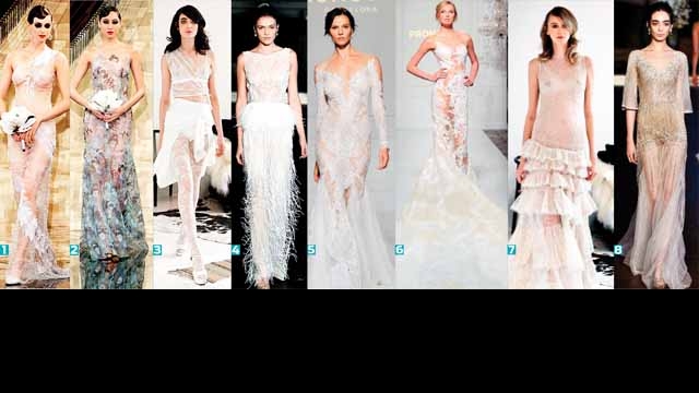I think we are slowly moving to sheer fabrics. We see celebrities like Kristen Stewart, Rihanna, Beyonce, Kim Kardashian, to name a few, who have been seen on red carpet rocking sheer dresses. Indian weddings are still more traditional with more religious beliefs. Most of the gowns (above) show a lot of skin, which might not be well accepted by the older generation (parents and relatives). However, I think, I might consider wearing the fifth (Pronovias gown), which has a plunging neckline or the sixth one with the long trail, especially for a cocktail party.