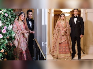 Netizens went gaga over Ayesha’s bridal look after the pictures from the dreamy wedding surfaced online. "I am a huge fan of this look and I am loving this old world glamour. The pretty Kashmiri pink, the beautiful gold kiran on the dupatta and the colours in this lehenga just spell out Sabyasachi Bride of the Year," an Instagram user commented. "She looks so beautiful in Sabyasachi lehanga. Mesmerised," another commented.