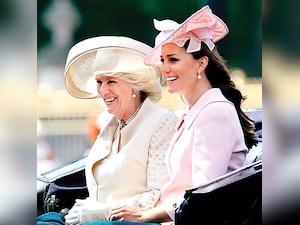 Kate attended the Trooping the Colour parade in a pale pink Alexander McQueen coat, sparking rumours that she may be hinting at the sex of the royal baby due in July. She rode alongside Camilla, Duchess of Cornwall, and Prince Harry at the annual event.