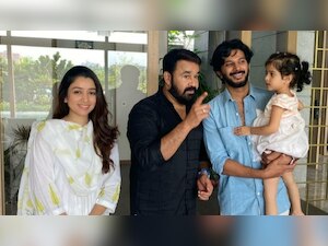 Earlier this year, Mohanlal had treated fans with a photo posing with his co-stars of many films and Megastar Mammootty. The photo in no time went viral on the Internet. Now, we got our hands on a photo of Mohanlal posing with Mammootty's son and Malayalam heartthrob Dulquer Salmaan clicked on the same day. In the photo, Mohanlal and DQ are joined by the latter's wife Amaal and their daughter Maryam.