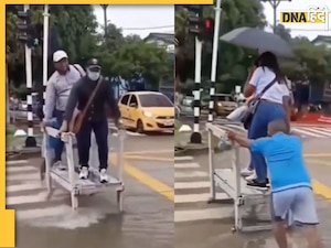 वीडियो में देखा जा सकता है कि सड़क पर इतना पानी बह रहा है कि अगर आप सड़क पार करेंगे तो आपके जूते और पैंट भीग जाएगी. यहीं पर लोगों को सड़क पार कराने के लिए एक व्यक्ति ने एक जुगाड़ बना लिया है. उसने एक बेंच जैसी चीज बनाई है जिसमें नीचे पहिए भी लगे हैं. यह आदमी इसी बेंच पर लोगों को चढ़ाता है और बेंच को धक्का लगाते हुए लोगों को सड़क के एक सिरे से दूसरे सिरे तक पहुंचा देता है.