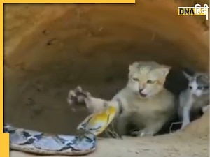 जानवरों से जुड़े न जाने कितने वीडियो सोशल मीडिया स्क्रॉल करते समय आपके सामने आए होंगे. इनमें से कुछ इतनी खतरनाक वीडियो होते हैं, जिन्हें आपको देखने की हिम्मत भी नहीं होती. वहीं, कुछ ऐसे वीडियो भी दिखाई दे जाते हैं, जो आपको इमोशनल कर जाते हैं. सोशल मीडिया पर इन दिनों एक बहादुर बिल्ली का वीडियो वायरल हो रहा है, जिसमें वहां अपने बच्चों को बचाने के लिए अजगर से भी पंगा ले लेती है.