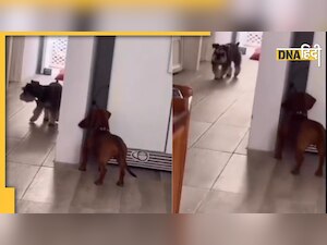 सोशल मीडिया पर दो कुत्तों की क्यूट हरकतें वीडियो के जरिए वायरल हो रही हैं. इस वीडियो में दोनों ऐसा लग रहा है कि लुका-छिपी खेलते नजर आ रहे हैं.