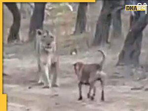 Animal Fight के वीडियो सोशल मीडिया पर सबसे ज्यादा वायरल रहते हैं और एक ऐसे ही वीडियो में एक कुत्ता शेर पर भारी पड़ता दिख रहा है.