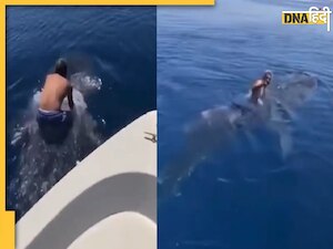 Viral News: सोशल मीडिया पर इन दिनों एक वीडियो वायरल हो रहा है. जिसमें एक शख्स समुद्र में Whale Shark की पीट पर बैठकर सवारी करता नजर आ रहा है.