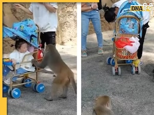 दरअसल इंस्टाग्राम पर @animal.worlds11 नाम के अकाउंट से एक वीडियो शेयर किया गया है. इसमें कुछ महिलाएं ट्रॉली में अपने बच्चों को घुमा रही हैं. वहीं पर बंदर भी घूम रहे हैं, जो बेहद फ्रैंडली दिख रहे हैं. इसी दौरान एक बंदर एक महिला की ट्रॉली में रखे लाल रंग के हैंडबैग की तरफ अट्रेक्ट होता है. बंदर ट्रॉली में से हैंडबैग उठाने की कोशिश करता है, लेकिन महिला उसे डांटकर भगाने की कोशिश करती है. इससे बंदर को गुस्सा आ जाता है और वो ट्रॉली में बैठी महिला की बेटी के बाल पकड़कर बुरी तरह खींच देता है. ये देखकर वहां मौजूद सभी लोग अचानक शॉक में आ जाते हैं. बच्ची के जोर से रोने पर बंदर घबराकर उसे छोड़ देता है और पीछे चुपचाप जमीन पर बैठ जाता है.