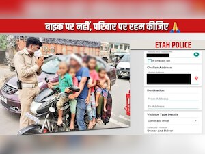 The slogan was posted alongside a picture from Etah where a policeman was seen standing, joining his hands in front of a bike which had not three instead of two but seven riders.