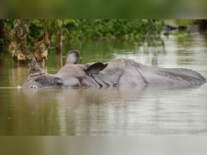 Eighty per cent of Kaziranga National Park, a UNESCO World Heritage Site, is under flood waters.