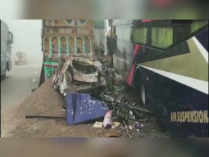 Greater Noida: At least 6 vehicles collided with each other at Yamuna Expressway due to reduced visibility caused by fog. Around 12 people injured and admitted to hospital. Police present at the spot, efforts underway to clear the route. pic.twitter.com/1TYl2pzqwz