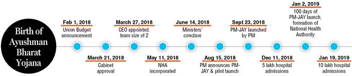 Ayushman Bharat Yojana or the Pradhan Mantri Jan Arogya Yojana (PM-JAY) was launched in 2018 with an aim to help the poorest 40 per cent of the population to afford quality secondary and tertiary care. In one year of its announcement and under 150 days of inception, the scheme has managed to cross ten lakh (one million) hospital admissions by January 31, 2019.