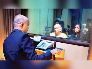 In the pictures issued by Pakistan after the meeting, Jadhav was seen sitting behind a glass screen while his mother and wife sat on the other side. They spoke through intercom.