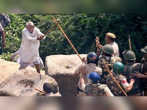 Some farmers even used tractor trolleys to break down the barricade, indulged in stone pelting and used lathis to attack policemen.