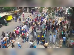 #WATCH | Punjab: A clash broke out between two groups near Kali Devi Mandir in Patiala today.