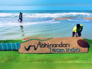 Pattnaik, a Padma Shri awardee, and internationally recognised sand artist, created 20 feet long bat using sand on which is inscribed -- 'Abhinandan Team India.'