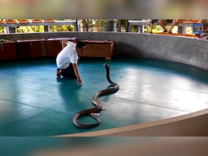 Wildlife rescuer Gautam Bhagat, who is working in Canacona area, has documented this scene after he rescued the cobra that had entered a house at Cauvrem village in state's southernmost taluka. The footage, which has gone viral, shows cobra with a bulged stomach throwing out a plastic bottle after it was rescued as he rolls on the rough ground in the village.