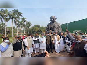 Opposition parties walked out of Lok Sabha and Rajya Sabha on the second day of Winter Session and have since been protesting at the Gandhi statue.