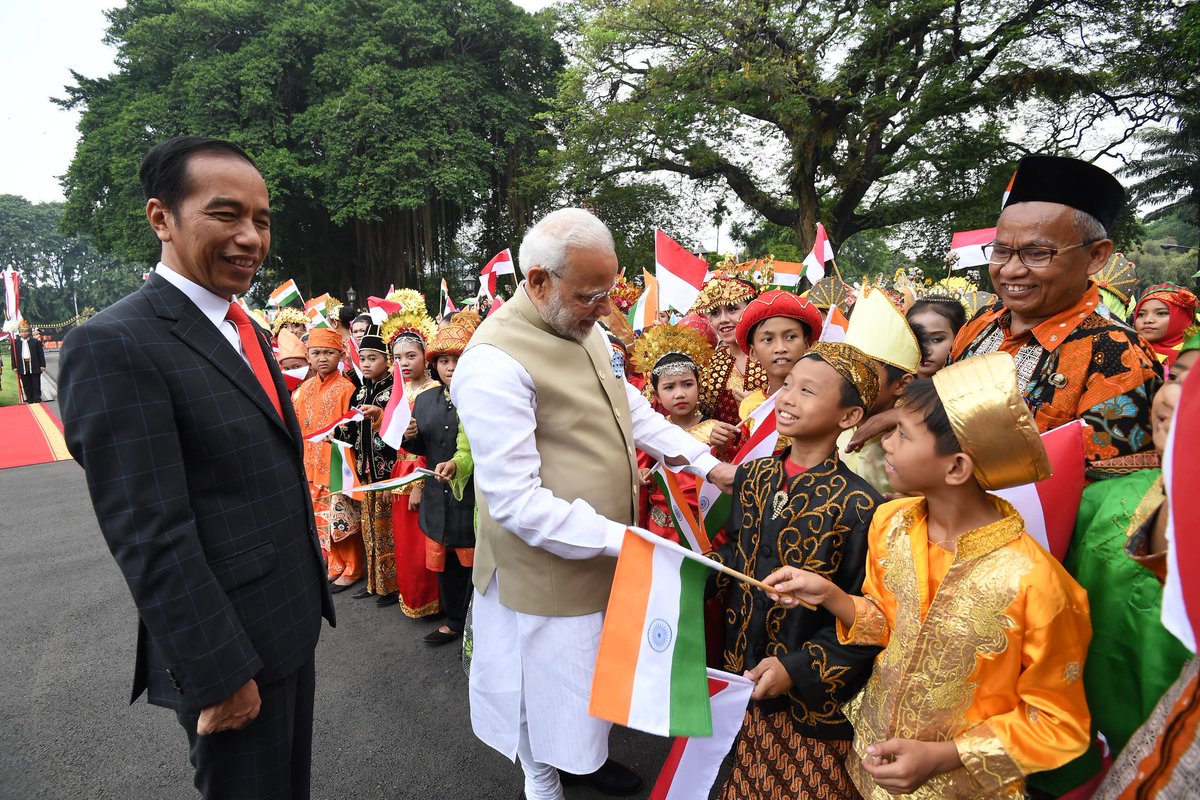 Before the tete-e-tete between the two leaders, President Widodo welcomed Prime Minister Modi at the palace.