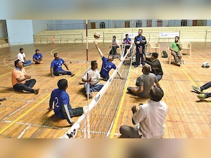 Women para athletes from various states have joined forces to showcase that even they are capable of pulling out a rabbit in a volleyball game. Punching above their weight, the power players are raring to go at the SMS Stadium. Avanindra Mishra grounds the ball