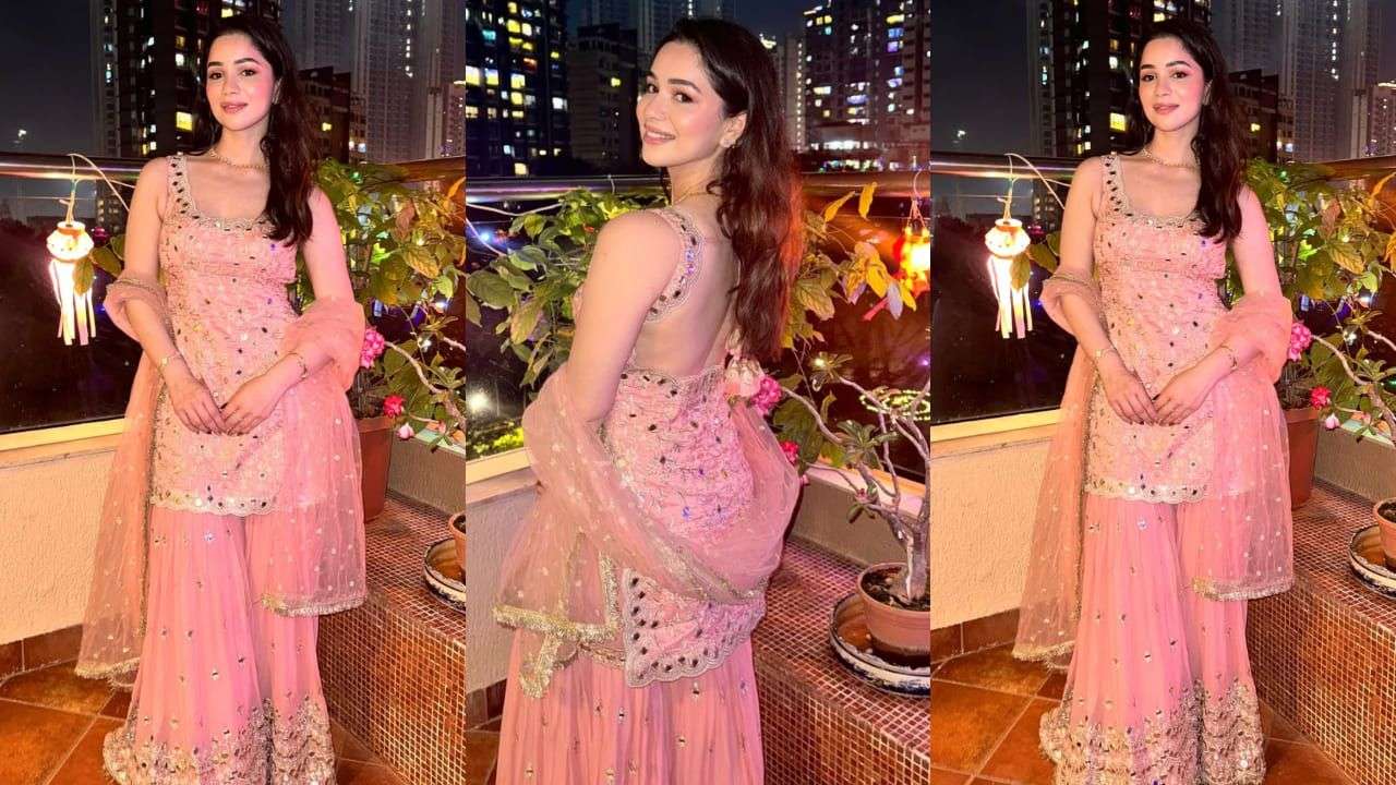 Sara Tendulkar stole the show in an elegant pink sharara set that exuded charm and sophistication. Featuring a sleeveless short kurta adorned with intricate mirror work on the bodice, the outfit had just the right hint of sparkle. Paired with flowing flared sharara pants and a matching dupatta, the ensemble radiated festive perfection. The soft pink hue, complemented by the subtle shimmer of the mirror work, made it an impeccable choice for any celebratory occasion.