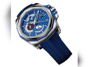 An icon among sea-lovers, this timepiece comes with tides indicator. The case is titanium, with a blue dial and blue bracelet. This model with its mechanical movement driving indications of the time and strength of the tides, the lunar cycle, as well as the strength of the currents and the height of the tides is a unique complication. The watch has a power reserve of 42 hours.