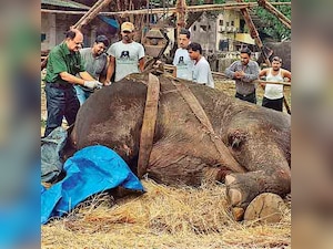 Locals claim that the elephant was hit by a truck about four months ago and because of the wounds, she collapsed last week. Bijlee weighs 4,500 kgs and is overweight by 1,500 kgs. Some think this has added to her medical situation.
