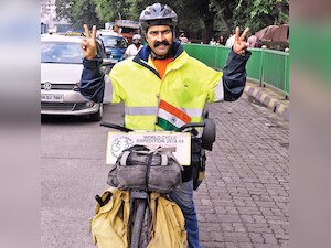 Through an ordinary roadster bike, limited funds, a tent and an Indian flag, Khandekar has been spreading message of pollution-free travel.