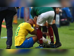 Mexican defender Carlos Salcedo took Neymar down near the half-way mark. The talismanic striker looked in pain when his opponent came over to pick up the ball from between his legs. Salcedo, though. happened to step on Neymar's ankle as he bent over to pick up the ball.