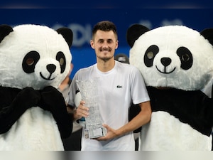 Both players exchanged breaks of serve at the start of the final set, before Tomic broke again to open up a 3-1 lead.