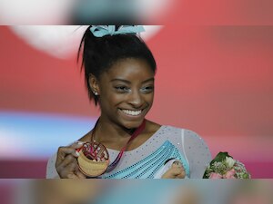 It was Biles' third gold medal of the week so far in Doha and she is halfway to a possible sweep of six gold medals at these championships.