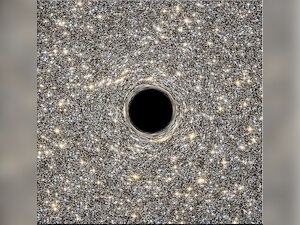 The supermassive black hole at the centre of M60-UCD1 makes up a huge 15 percent of the galaxy's total mass, and weighs five times that of the black hole at the centre of the Milky Way. The study is published in the journal Nature.
