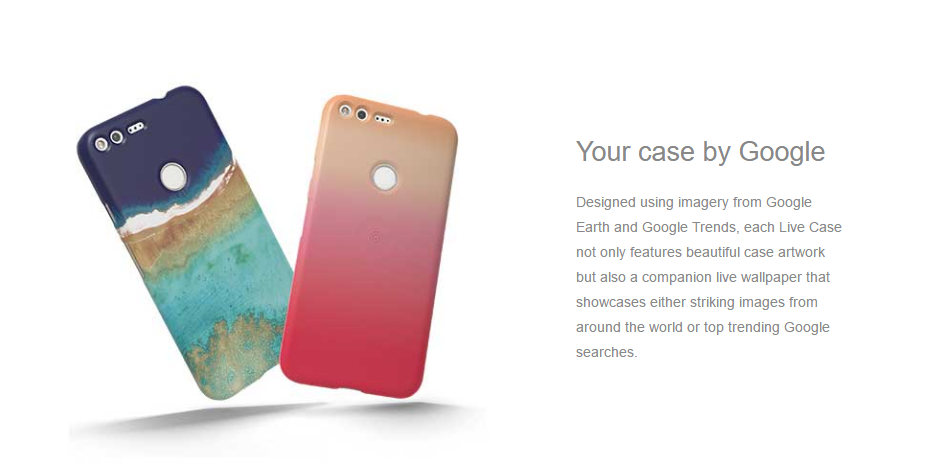 The first image gives a comprehensive side by side look of the phones with a tagline that reads “introducing Pixel phone by Google”
