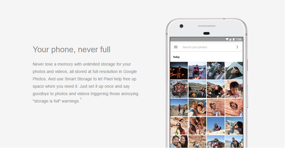 Perhaps the most intriguing feature is the unlimited storage of photos and videos in full resolution in Google Photos.