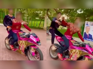 In the video, these two men are seen riding a pink coloured Barbie themed bike without wearing helmets. The two men are seen lip-syncing to an audio while riding the bike and the pillion rider suddenly pretends to stab the main rider as a part of their stunt who later jumps off the bike while the main rider pretends to crash in a footpath. Though no one was hurt, the act goes against the laws.