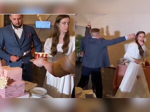 The video shows the bride and groom shocked and speechless after this, seemingly running away from the man who wanted to smear cake on their faces. The couple looked annoyed at first because of their friends' behaviour, however, later the man tried to make up for it by asking the groom for a hug, terming his gesture as fun.