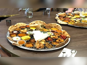 The restaurant, situated in Ashton, Greater Manchester, is serving nearly eight varieties of chapati, three types of rice, 16 curries and sabzi, three dips in addition to 6 desserts, 2 lassis, and 2 savoury snacks. The thali is priced at £35 (Rs 3,611).