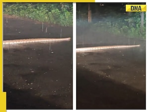 In a spine-chilling video, a six-foot long Indian rock python was spotted crawling on the road amid the downpour in the Aarey colony of Maharashtra's Mumbai. The video, shared by an 'X' user, has so far garnered 71.1 k views.