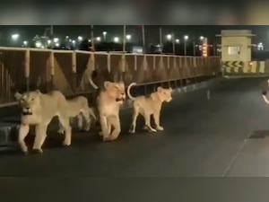According to a report in Times Now, the family of five lions including two cubs walked on the Pipavav Road and reached the port.