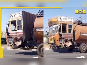 Viral video: The truck appears to be completely damaged, however, the driver is seen navigating the vehicle on a highway.